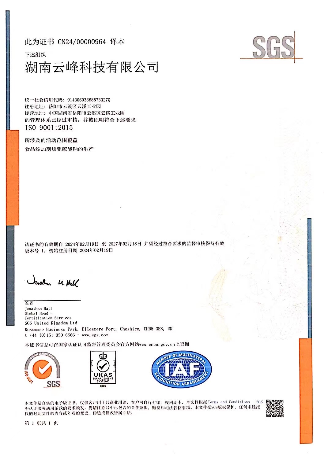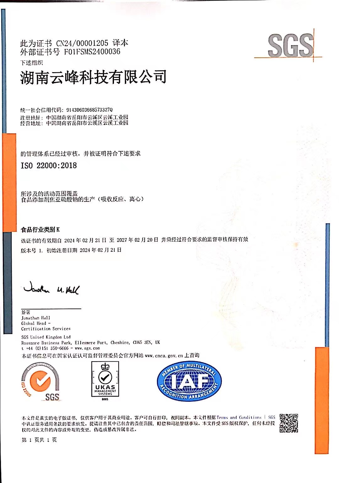 湖南云峰科技有限公司(以下簡稱云峰科技),是由長沙湘岳化工責(zé)任有限公司全額投資以生產(chǎn)焦亞硫酸鈉、亞硫酸鈉等亞硫酸鹽為主營業(yè)務(wù)的高科技企業(yè),具有六十多年的生產(chǎn)歷史,同時也是焦亞硫酸鈉的國家標(biāo)準(zhǔn)制定參與者。在行業(yè)內(nèi)具有很大的影響力。現(xiàn)有職工八十余人。具有優(yōu)良的經(jīng)營管理團隊和成熟的生產(chǎn)技術(shù)隊伍。由多位在化學(xué)、化工行業(yè)擁有豐富工作經(jīng)驗的工程師及技術(shù)員團隊組建而成,致力于亞硫酸鹽產(chǎn)品的研發(fā)、生產(chǎn)和銷售。2020年公司對生產(chǎn)設(shè)備、安環(huán)設(shè)施及工業(yè)技術(shù)等進行了大規(guī)模的升級改造,使焦亞硫酸鈉和亞硫酸鈉的生產(chǎn)工藝更加先進,技術(shù)更成熟,產(chǎn)品質(zhì)量更優(yōu)良。無論在生產(chǎn)工藝、設(shè)備、產(chǎn)品質(zhì)量、清潔生產(chǎn)、節(jié)能環(huán)保和員工素質(zhì)方面,均處于行業(yè)領(lǐng)先地位。公司的主導(dǎo)產(chǎn)品“云峰”牌焦亞硫酸鈉,歷史悠久,深受國內(nèi)外客戶信賴,產(chǎn)品遠銷東南亞、歐美、非洲、南美洲等20多個國家和地區(qū),產(chǎn)品供不應(yīng)求。